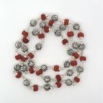 The Om Large Beads Rudraksha Mala is a spiritually significant and beautifully crafted prayer necklace designed to enhance meditation, mindfulness, and divine connection. This sacred mala consists of 108 premium Rudraksha beads, each carefully selected for its size, texture, and natural energy. The beads are strung together with strong, durable thread and accented with a beautifully engraved Om charm, symbolizing the universal sound of creation and spiritual awakening. Rudraksha beads, revered in Hinduism and Buddhism, are believed to carry powerful vibrations that promote calmness, focus, and positive energy.