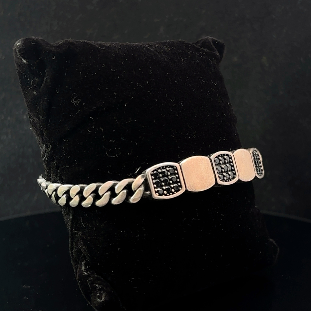 The Silver Man's Bracelet With Black American Stone combines polished sterling silver with striking black stones for a bold, sophisticated look that transitions effortlessly from day to night.