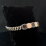 The Silver Man's Bracelet With Black American Stone is a masterful blend of rugged elegance and contemporary design, crafted for the modern man who appreciates distinctive accessories. This eye-catching piece features premium 925 sterling silver links alternating with genuine black American stones, carefully selected for their deep, uniform coloration and exceptional durability. Each stone is precision-cut and securely set in polished silver bezels, creating a striking contrast against the bracelet's luminous metalwork. The substantial weight (XX grams) delivers a satisfying sense of quality, while the flexible construction ensures all-day comfort.